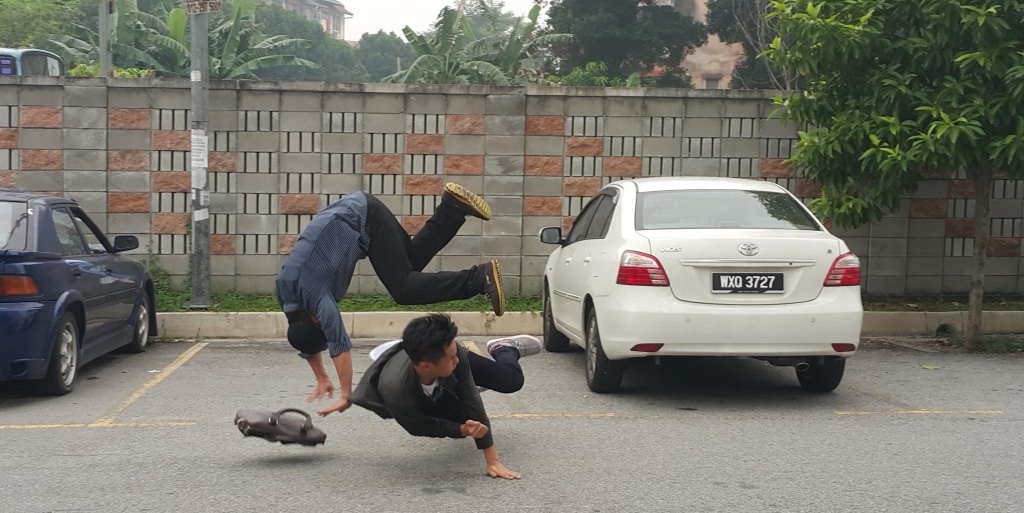 目前正在进行拍摄的他,《重案狙击2》导演希望让画面更好看与让剧情更紧凑,导演都会设计一些武打动作给他,因为需要无数次重復武打动作的镜头串起来,所以他需要摔了又摔,跳了又跳,翻了又翻,让他感受到作为一位动作演员真的不简单。在有一次的翻滚动作,中途被草地上的大石头敲到嵴椎,让他疼痛不已,但出来的效果值得的!