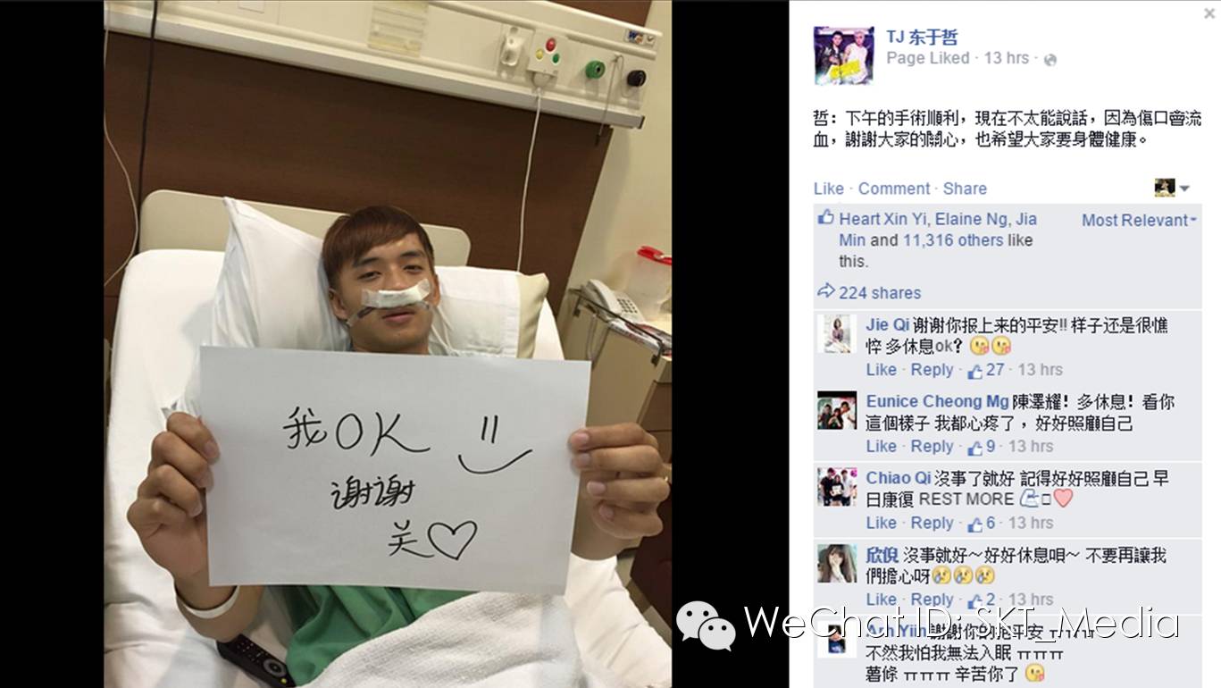 哲:下午的手术顺利,现在不太能说话,因为伤口会流血,谢谢大家的关心,也希望大家要身体健康。